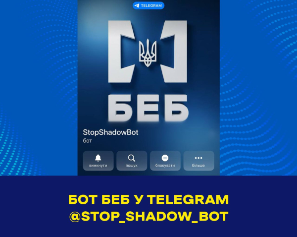 Бюро економічної безпеки України (БЕБ) запустило у Telegram бот StopShadowBot, який дозволяє громадянам анонімно повідомляти про випадки продажу техніки без чека або з нефіскальним чеком.