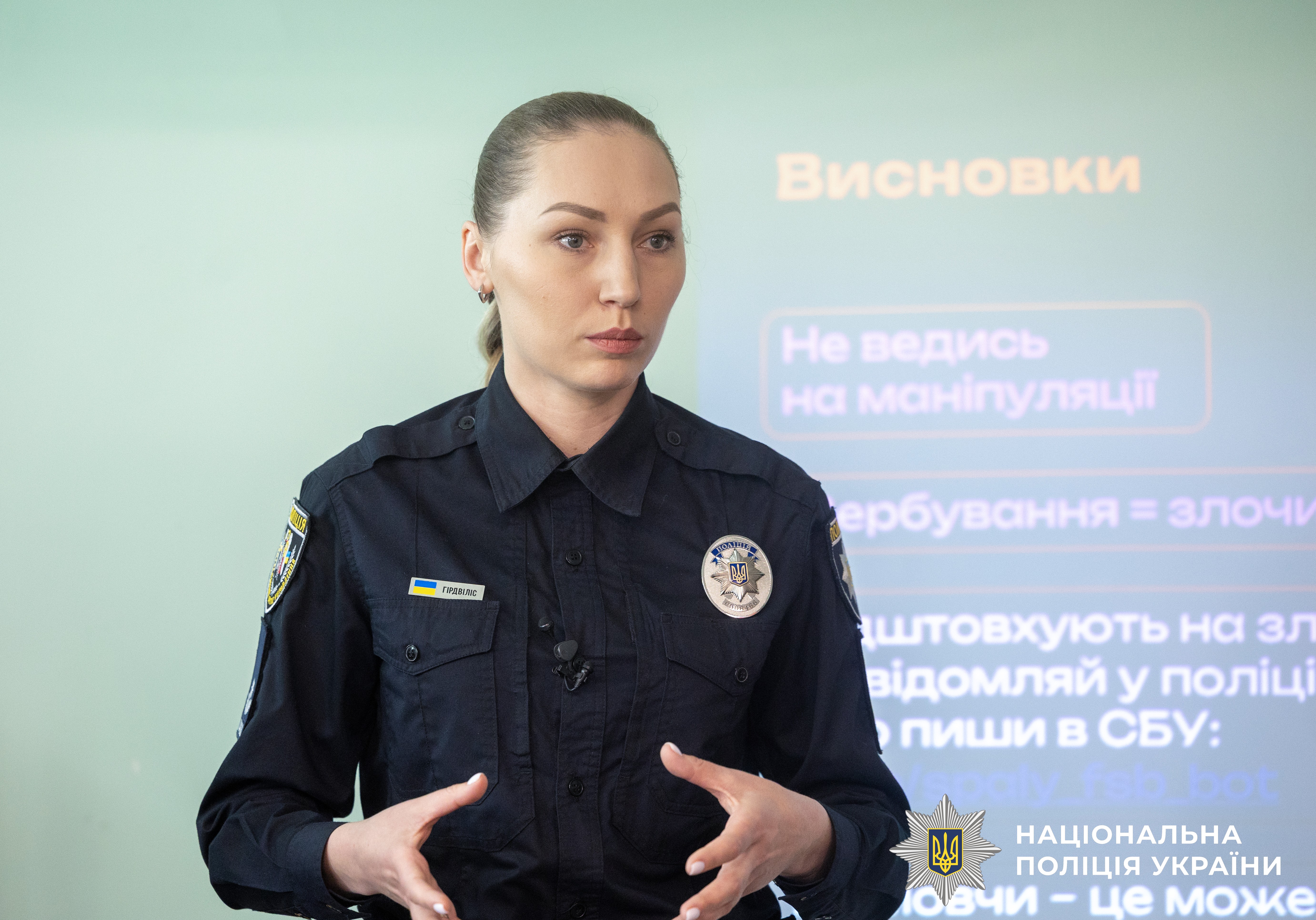 Речниця Нацполіції Юлія Гірдвіліс розповіла школярам, що ворог використовує будь-які методи, аби завдати шкоди Україні і один з них – вербування дітей та підлітків для виконання небезпечних завдань: